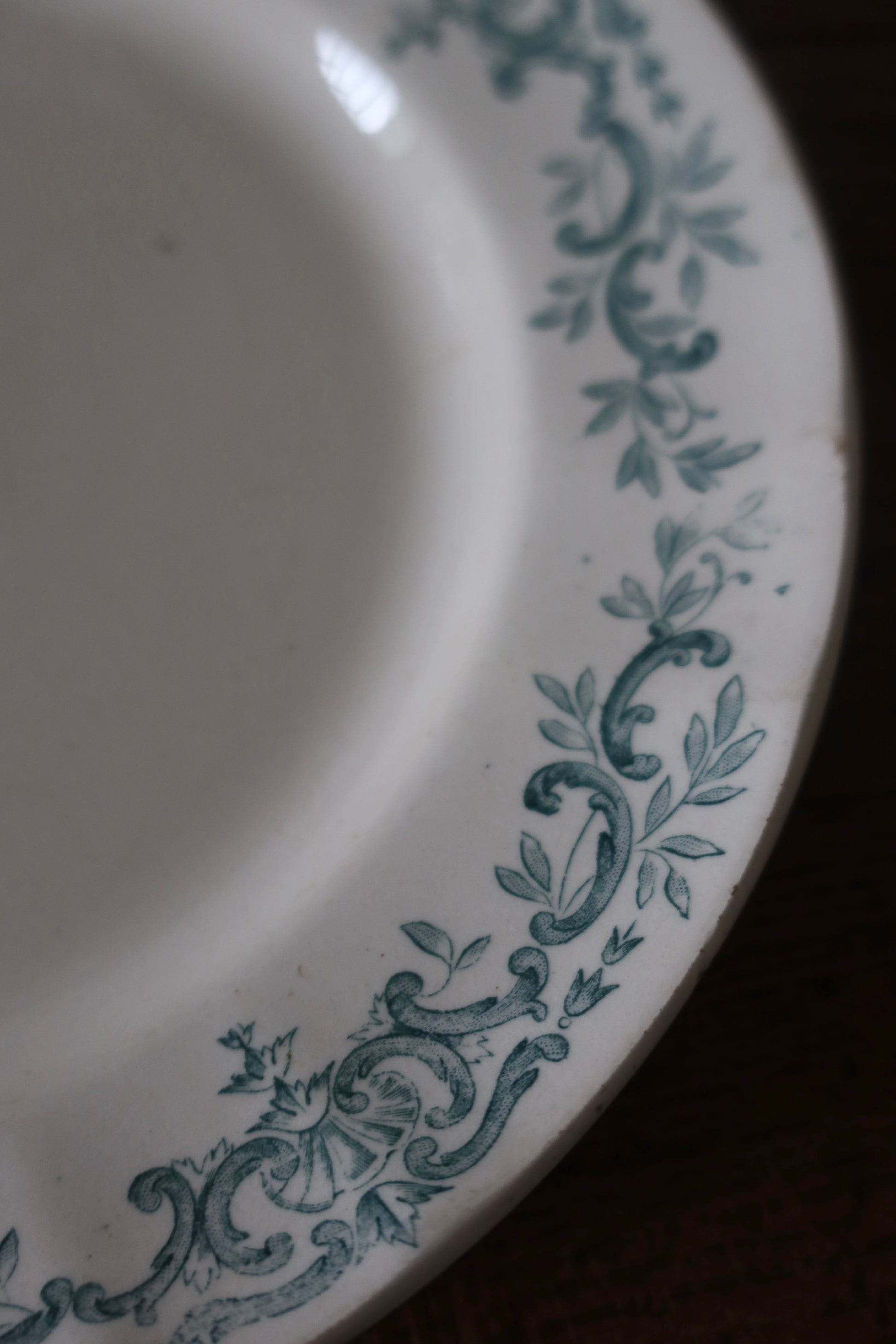 Beautiful round French ironstone dish, made by Longchamlp regent based on the 18th century style of foliage and scrolls.