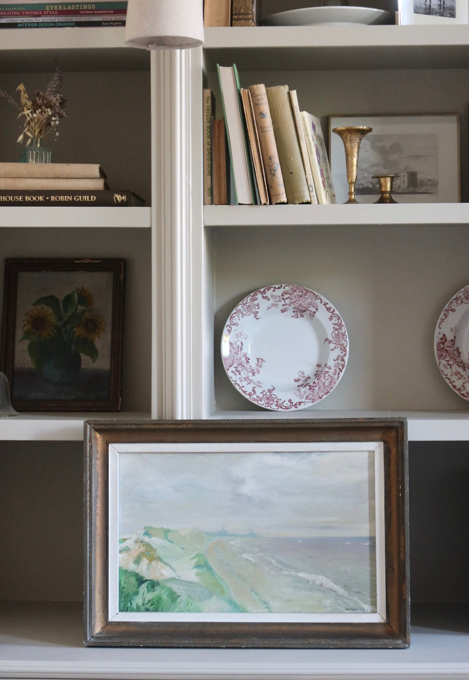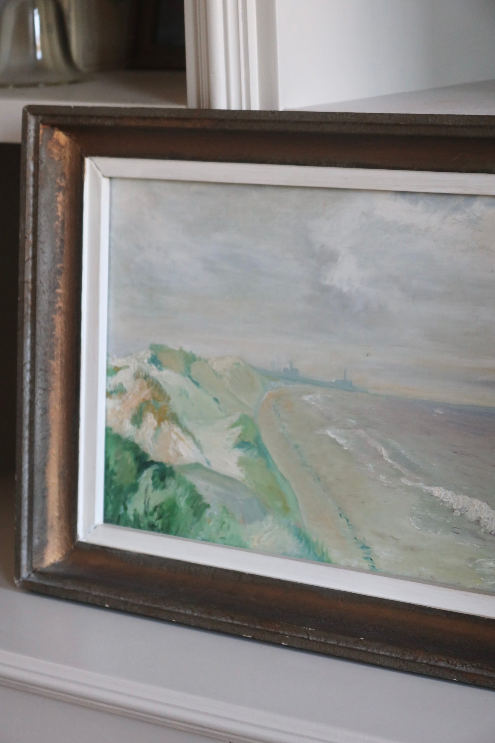 Beautiful French seascape coastal oil painting, of the northern France coastline. Stunning, soft pastel colours.