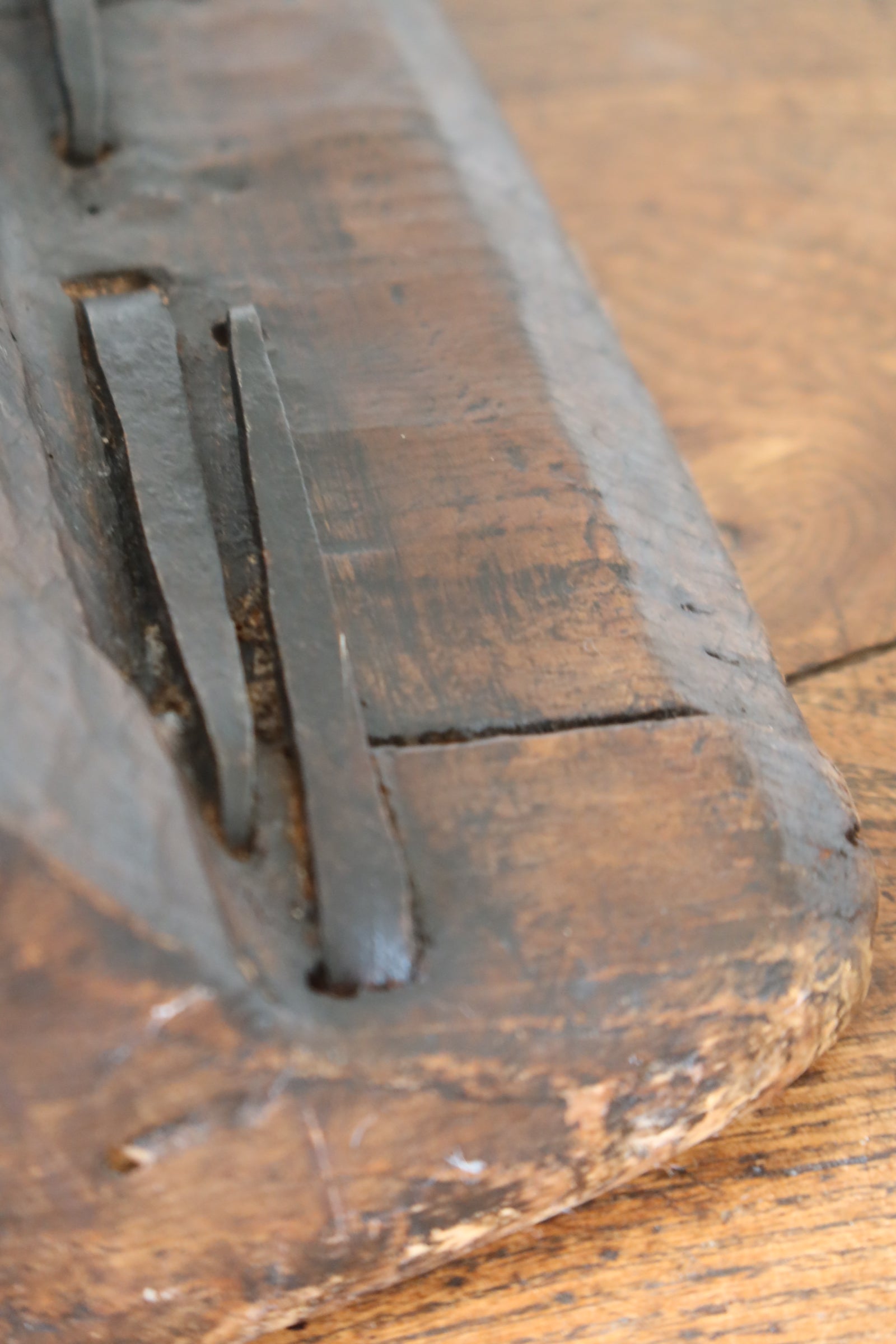 Beautiful hardwood salting tray dating back to the 18th century with old iron repairs